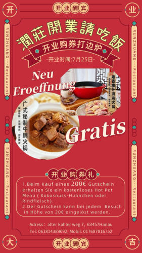 Famillie Cui eröffnet das Restaurant RUNZHUANG am 25.07.2024 ab 17 Uhr.